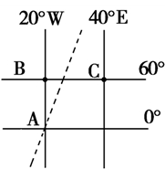 读某晨昏圈,CBD为昏线,A(20°E,0°),C(70°W,70°N),其中A和B、C和D分别为对趾点。回答1-3题