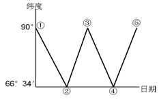 晨昏线与北半球纬线圈相切于H点,读H点纬度的年变化示意图。回答7-8题