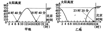 (6)6月22日,甲地与乙地昼长时间相差2小时,那么,该日乙地昼长时间为 小时。