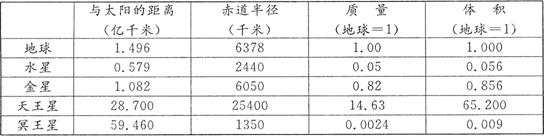 13.根据上表行星的相关参数,判断“惨遭降级”的是