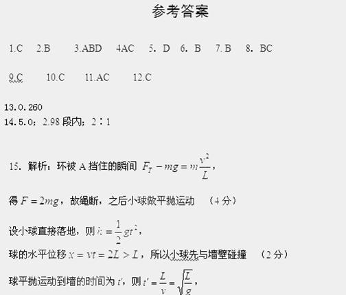 向右运动,在A处环被挡住而立即停止,A离墙的水平距离也为L.求在以后的运动过程中,球第一次碰撞点离墙角B点的距离是多少?