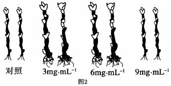 (4)在探究生长素促进插条生根的最适浓度时,一名技术人员用几种不同浓度生长素溶液处理插条基部,然后在沙床中培养,观察生根情况。图2为生长素促进枝条生根的情况。请结合图1判断,在下列各项浓度值中,最好选用( )