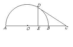 切半圆于点D,CD=2,DE⊥AB,垂足为E,且E是