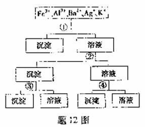 12.用过量的H2SO4、NaOH、NH3、H2O、NaCl等溶液,按题12图所示步骤分开五种离子.则溶液①、②、③、④是