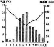 16、图中的四个城市,其气候特点与下图相符的是( )