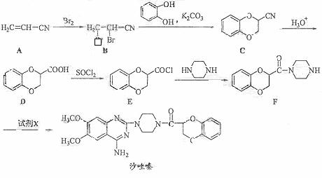 (4)由F制备多沙唑嗪的反应中要加入试剂X(C10H10N3O2Cl),X的结构简式为 。