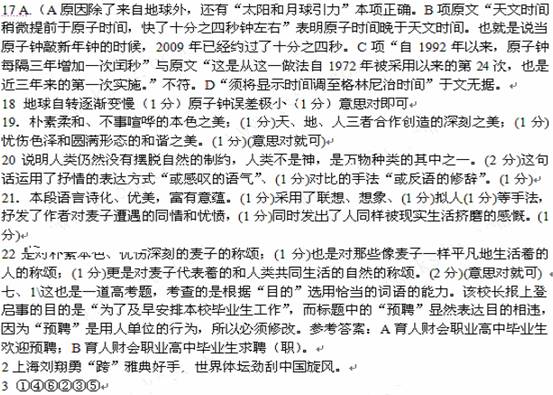 16 D (A原文中“2008年成了自1992年以来最长的一年”不能表明“2008年比1992年以来的每一年都至少多24小时零1秒钟。”B原文“地球自转速度变得不规律起来”“平均而言”“约”都表明天文时间的变化不是规律的,均匀的。因此“而地球自转每天都比原子时间慢2毫秒。”不正确 。C“必须不时进行调整”的是原子钟,“天文时间”是基于地球自转计算的,无法人为计算)。