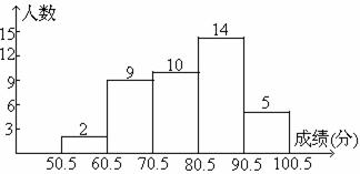 初三某班对最近一次数学测验成绩(得分取整数)进行统计分析,将所有成绩由低到高分成五组,并绘制成如下图所示的频数分布直方图,请结合直方图提供的信息,回答下列问题: