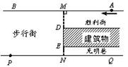 如图,一段街道的两边缘所在直线分别为AB、PQ,且AB∥PQ.建筑物的一端DE所在直线MN⊥AB于点M,交PQ于点N.小亮从胜利街的A处,沿着AB方向前进,小明一直站在点P的位置等候小亮.