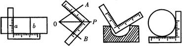 4.用一把带有刻度尺的直角尺,(1)可以画出两条平行的直线a和b,如图①;(2)可以画出∠AOB的平分线OP,如图②;(3)可以检验工件的凹面是否为半圆,如图③;(4)可以量出一个圆的半径,如图④.这四种说法正确的有( )