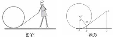 21.如图,图①是一个小朋友玩“滚铁环”的游戏。铁环是圆形的,铁环向前滚动时,铁环钩保持与铁环相切.将这个游戏抽象为数学问题,如图②.已知铁环的半径为5个单位(每个单位为5cm),设铁环中心为O,铁环钩与铁环相切点为M,铁环与地面接触点为A,∠MOA=
