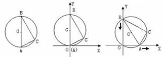 22.图①是用钢丝制作的一个几何探究具,其中△ABC内接于⊙G,AB是⊙G的直径,AB=6,AC=3.现将制作的几何探究工具放在平面直角坐标系中(如图②),然后点A在射线OX由点O开始向右滑动,点B在射线OY上也随之向点O滑动(如图③),当点B滑动至与点O重合时运动结束.