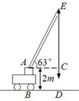 如图,一辆吊车的吊臂以63°的倾角倾斜于水平面,如果这辆吊车支点A距地面的高度AB为2m,且点A到铅垂线ED的距离为AC=15m,求吊臂的最高点E到地面的高度ED的长(精确到0.1 m).