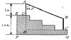 23.某学校体育场看台的侧面如图阴影部分所示,看台有四级高度相等的小台阶.已知看台高为l.6米,现要做一个不锈钢的扶手AB及两根与FG垂直且长为l米的不锈钢架杆AD和BC(杆子的底端分别为D,C),且∠DAB=66. 5°.