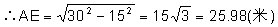 又∵DE=AEtg15°=25.98×0.267=6.94(米)