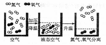 请从下图分离空气示意图中获取物质的组成、构成、性质、变化等信息各一条: