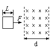 边长为L的正方形金属框在水平恒力F作用下,将穿过方向如图所示的有界匀强磁场.磁场范围宽为d(d >L)。已知线框进入磁场时恰好匀速。则线框进入磁场的过程和从另一侧出磁场的过程相比较,下列说法正确的是---------( )