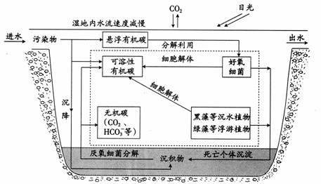 (1)当污染物随水流进入该湿地时,湿地水体中碳元素的迁移和转化途径如图12。请用箭头和文字补充虚线框中的碳转化途径。
