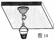 24.在测定大气压的实验中,因缺少大量程的弹簧测力计,小明设计并进行了如下的实验(如图14所示)。