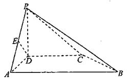 ,在四棱锥P-ABCD中,PD⊥底面ABCD,底面ABCD是直角梯形,DC//AB,∠BAD=90°,且AB=2AD=2DC=2PD=4(单位:cm),E为PA的中点。