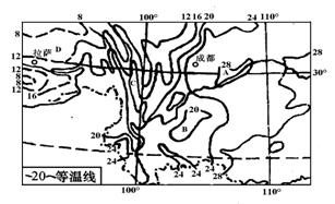 图16、17分别为我国某地区七月平均气温分布和6-8月降水量分布情况。读图回答下列问题。(10分)