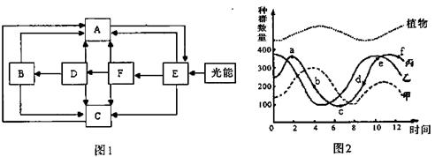 (1)图1中能构成群落的是 ▲ (填字母),图2中的乙相当于图1中的 ▲ 。