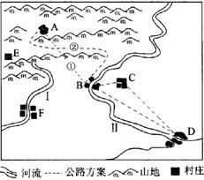 以沟通Ⅰ、Ⅱ两条河流。请在图中画出
