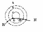 6.图所示,虚线a、b和c是某静电场中的三个等势面,它们的电势分别为Ua、Ub和Uc,Ua<Ub<Uc。一带正电的粒子射入电场中,其运动轨迹如实KLMN所示,由图可知:[ AC]