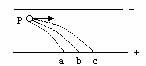 19.如图所示,水平放置的两个平行金属板,上板带负电,下板带等量的正电,三个质量相等、分别带正电、负电和不带电的粒子从极板的左侧P点以相同的水平初速度进入电场中,分别落在正极板的a、b、c三处,由此可知:( D )