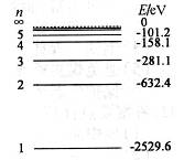 3、在氢原子光谱中.电子从较高能级跃迁到n=2能级发出的谱线属于巴耳末线系。若一群氢原子自发跃迁时发出的谱线中只有2条属于巴耳末线系,则这群氢原子自发跃迁时最多可发出