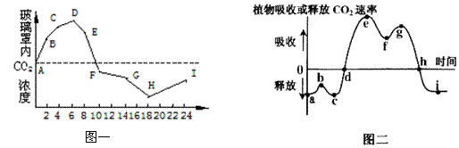 图二中的b点对应于图一中的________点, 图二中的ef段的C3的含量___________(填“增多”或“减少”),到达图二中__________点时,植物体积累的有机物最多。经过这一昼夜之后,植物体的有机物含量会___________。(填“增加”、“减少”或“不变”)