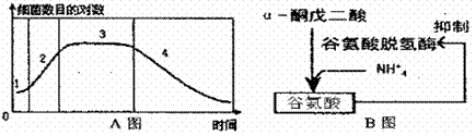 4.用某种培养基培养谷氨酸棒状杆菌,测得其生长曲线如图A所示。谷氨酸是谷氨酸棒状杆菌的代谢产物之一,其合成途径如图B所示。下列有关叙述,错误的是( )