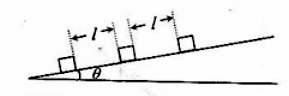 如图所示,倾角为θ的斜面上静止放置三个质量均为m的木箱,相邻两木箱的距离均为l。工人用沿斜面的力推最下面的木箱使之上滑,逐一与其它木箱碰撞。每次碰撞后木箱都粘在一起运动。整个过程中工人的推力不变,最后恰好能推着三个木箱匀速上滑。已知木箱与斜面间的动摩擦因数为μ,重力加速度为g.设碰撞时间极短,求工人的推力;
