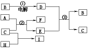 已知:(a)D、C、F、H为单质,其余为化合物;