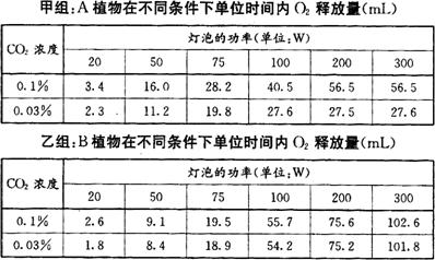 (5)分析上表数据可以看出,当A植物在灯泡功率为100 W、CO2度为0.03%时,采取 措施更有利于显著提高光合作用强度。
