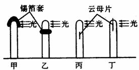 右下图所示对燕麦胚芽鞘进行的向光性实验,(图中锡箔套不透光,云母片具有不透水性)图中能弯向光源生长的是