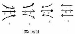 10.如图所示,正电荷q在电场中由P点向Q点运动,而且电势能越来越大,那么可以判定,它所在的电场是图中的: