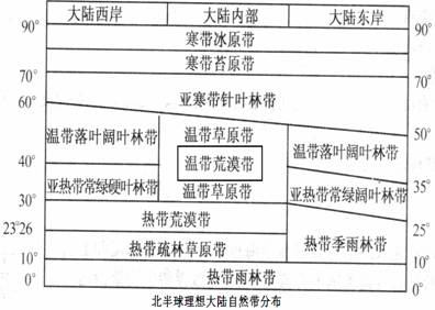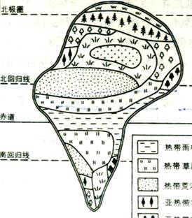 举例:南半球缺少亚寒带针叶林带、苔原带--南半球中高纬度缺陆地