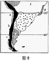 图十为“某大洲自然带分布示意图”(图中字母a-g分