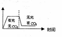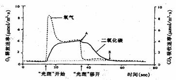 11.森林中,阳光可能会穿过森林中的空隙,在地上投下“光斑”,它们随着太阳的运动和枝叶的摆动而移动。右图显示了在“光斑”照耀前后一株生长旺盛的植物光合作用过程中吸收CO2和释放O2的情况。下列有关说法正确的是: ( )