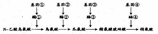 5.下图为脉胞霉体内精氨酸的合成途径,不能从示意图得出的结论是 ( )