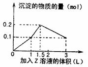向混合溶液中滴加0.1 mol·L-1某溶液Z,所得沉淀的