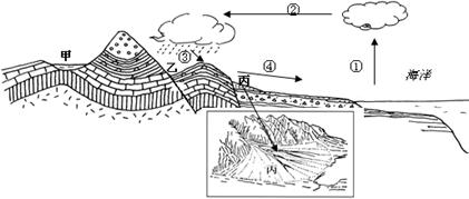 (2)图中甲处地貌是先成山地后成谷地,先形成山地的成因是 ▲ ,后形成谷地的成因是 ▲ 。