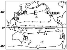 (7分)读太平洋洋流分布示意图,回答问题。