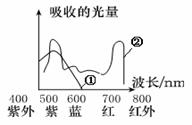 24.植物叶绿体中的色素吸收光的情况如右图,①②代表