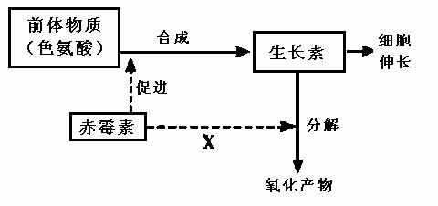 (1)果实中的生长素主要来源于 。从图中可知细胞分裂素与生长素都能促进植物的生长。从细胞学基础来分析植物的生长,生长素主要通过促进 而促进植物生长,细胞分裂素主要通过促进 而促进植物生长。 (2)从图中还可知,除了生长素能促进细胞伸长外,赤霉素也可能具有此作用。两者的关系可用下图表示。