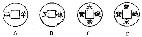 7.文物考古和鉴定往往需要运用相关的知识进行分析和辨别。而其中有些赝品往往只需用肉眼就能轻易作出判断,请仔细观察和辨别下列铜币的拓片,其中哪一枚可能不是假币? ( )