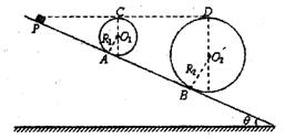 15.如图所示是游乐园内某种过山车的示意图。图中半径分别为R1=2.0m和R2=8.0m的两个光滑圆形轨道固定在倾角θ=37°的斜轨道面上的A、B两点,已知两圆形轨道的最高点C、D均与P点平齐,圆形轨道与斜轨道之间圆滑连接。现使小车(可视为质点)从P点以一定的初速度沿斜面向下运动。已知斜轨道面与小车间的动摩擦因数为μ=1/6,g=10m/s2,sin37°=0.6,cos37°=0.8.问: