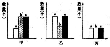 14.下图中的甲、乙、丙表示动物细胞有丝分裂中的三个阶段,a是染色体数,b是染色单体数,c是DNA分子数,a、b、c的数量关系正确的 ( )