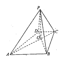 已知四棱锥P-ABCD的底面ABCD为等腰梯形,AB//DC,AC⊥BD,AC与BD交于点O,且顶点P在底面上的射影恰为O点。PB=![]()